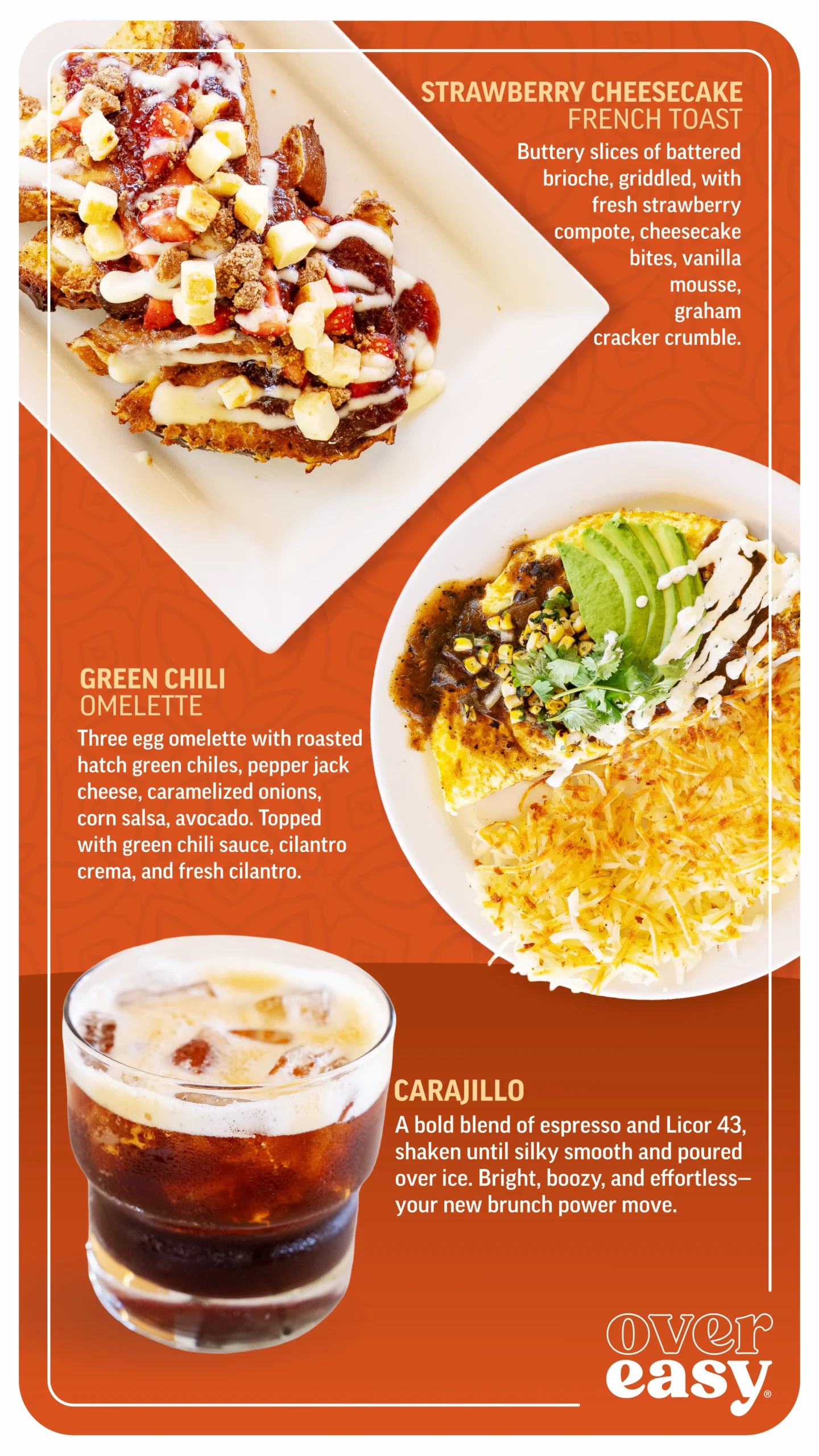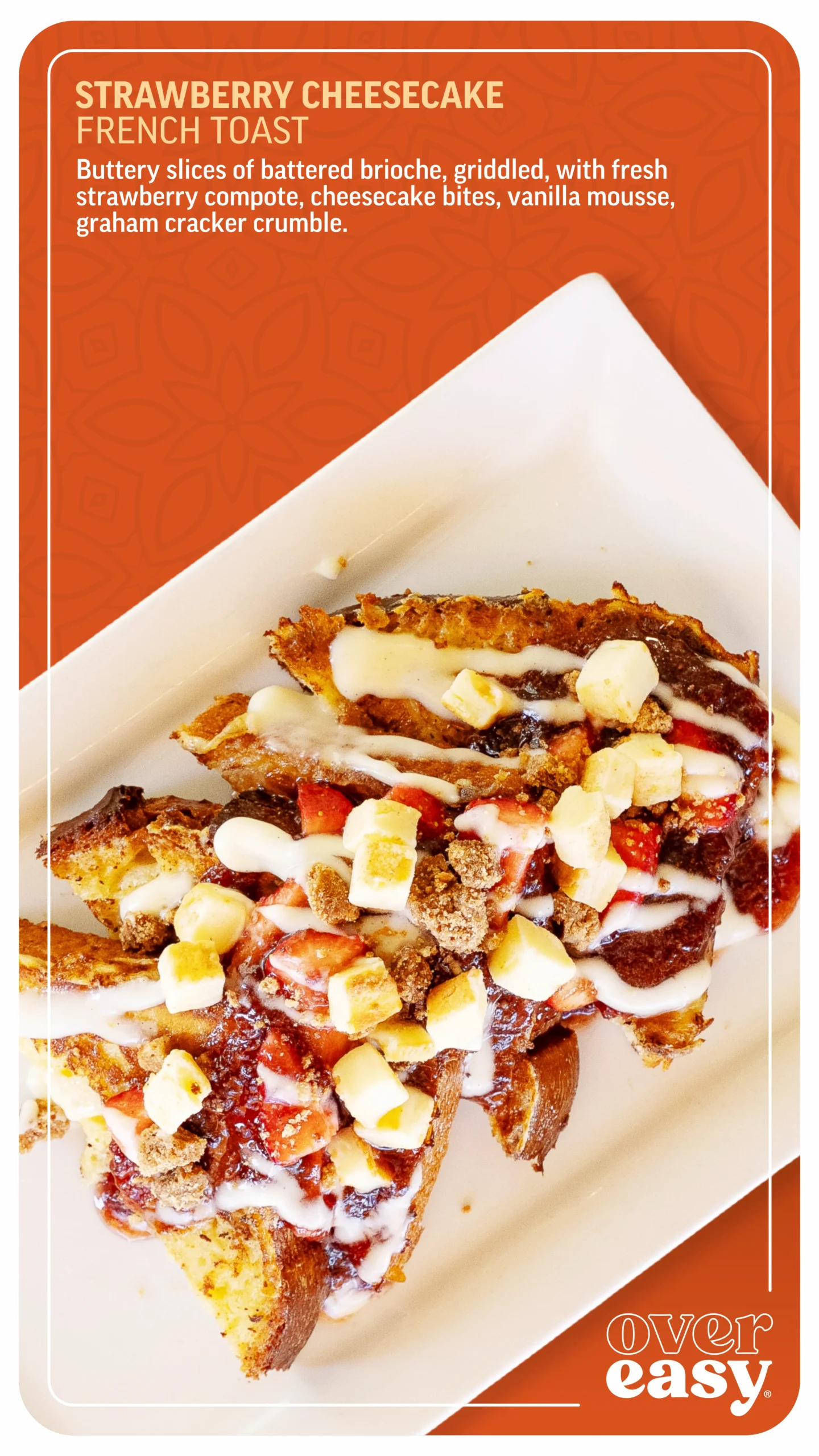 At home, the office, or social event when hunger strikes, set the table with a delicious menu of breakfast and brunch dishes from Over Easy!